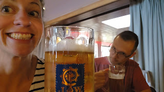 Lunch with lots of beers and an obstler at the brewery in Aying, Germany